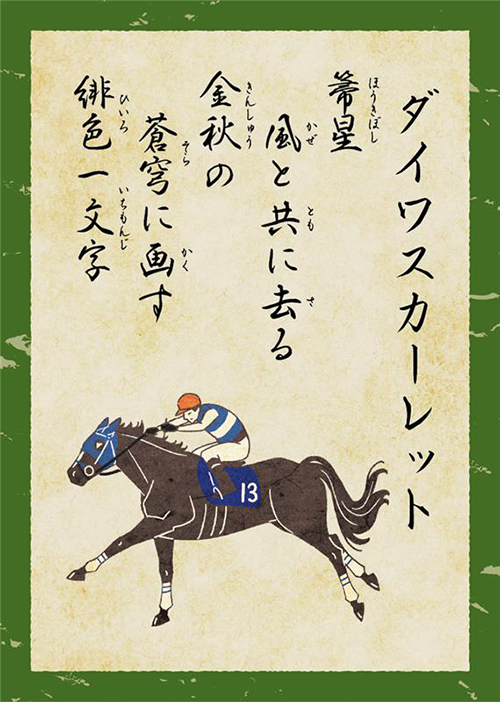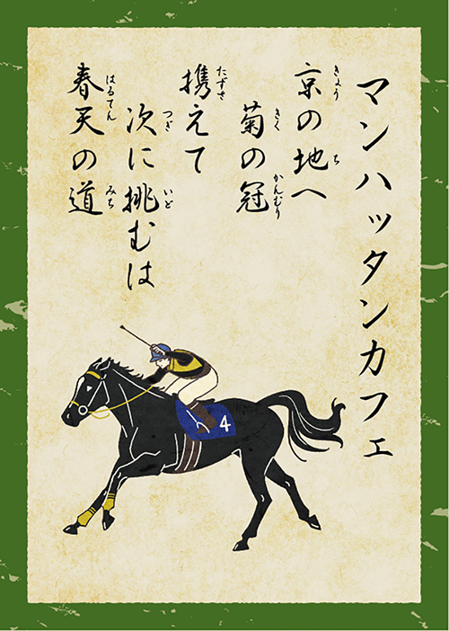 ③採用された名馬は百名馬一首となって京都競馬場100周年記念特設サイトにて掲出。